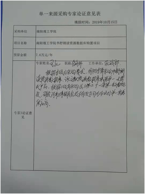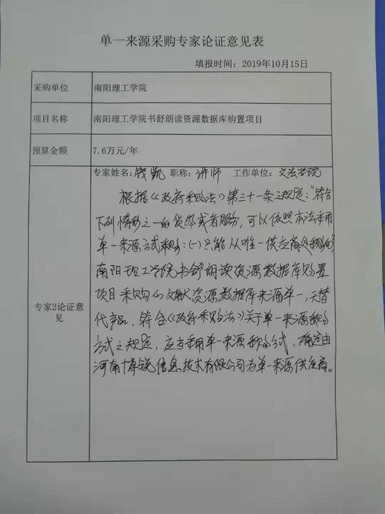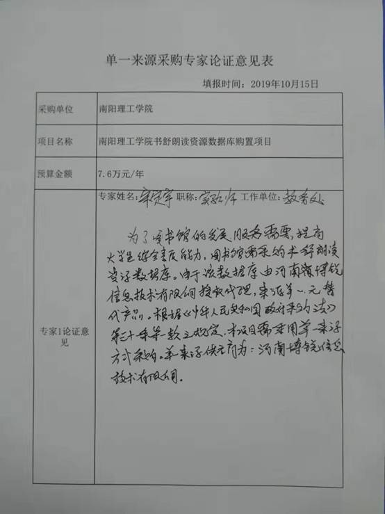 南阳理工学院书舒朗读资源数据库购置项目拟采用单一来源采购的公示