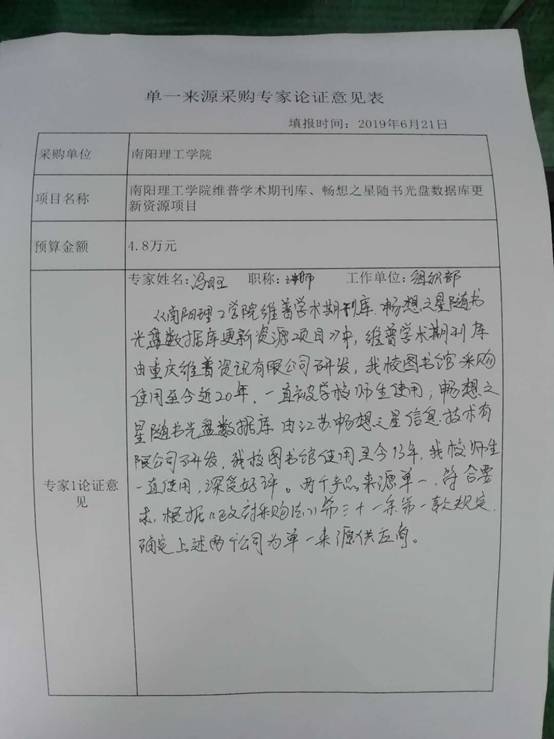 南阳理工学院维普学术期刊库、畅想之星随书光盘数据库更新资源项目拟采用单一来源采购的公示