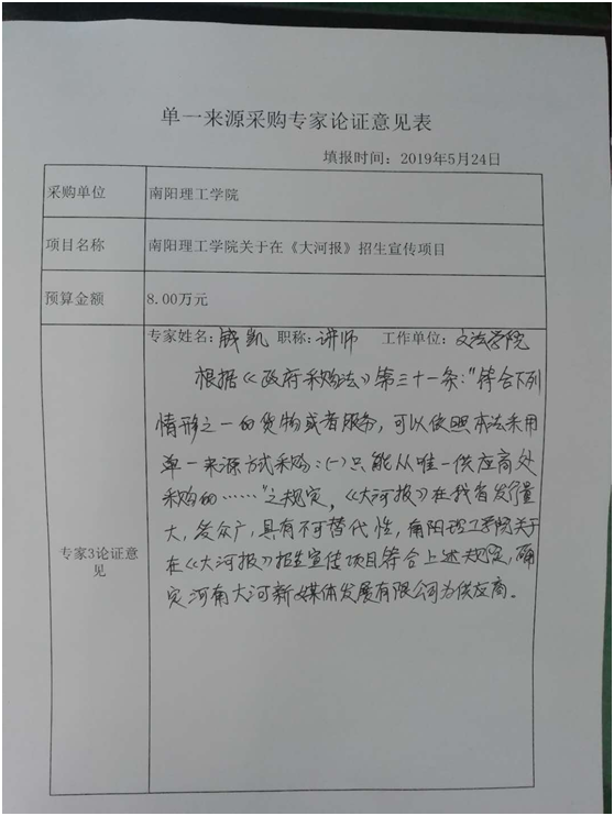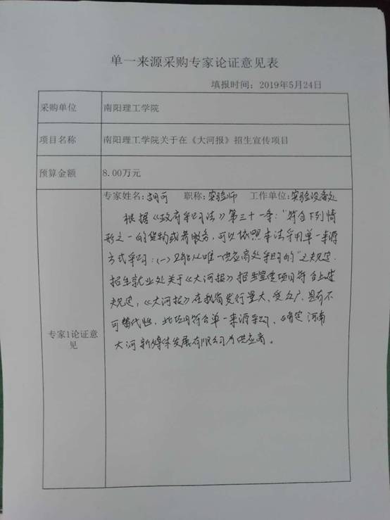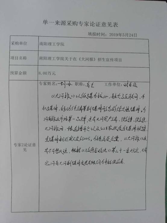 南阳理工学院关于在《大河报》招生宣传项目拟采用单一来源方式采购。现公示如下: