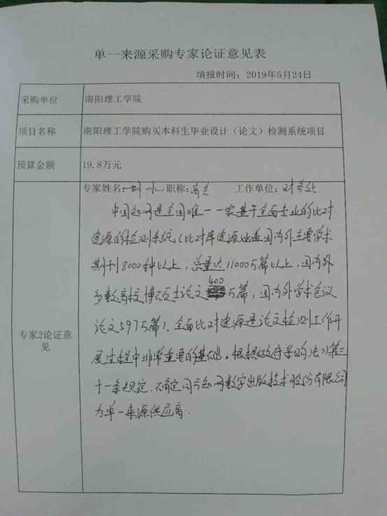 南阳理工学院购买本科生毕业设计(论文)检测系统项目拟采用单一来源方式采购。现公示如下: