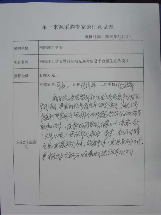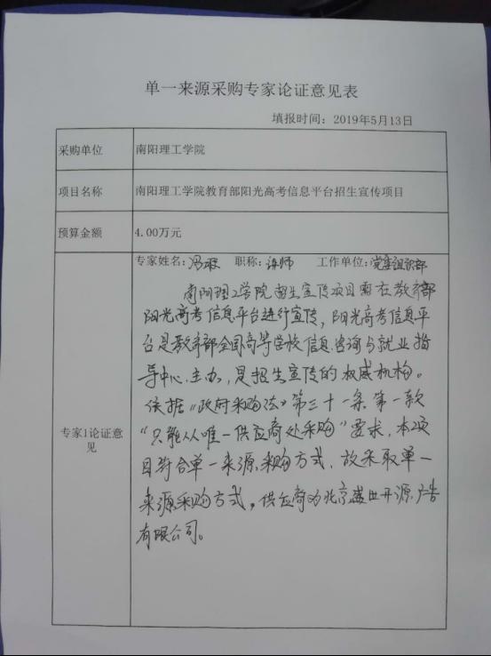 南阳理工学院教育部阳光高考信息平台招生宣传项目拟采用单一来源方式采购。现公示如下: