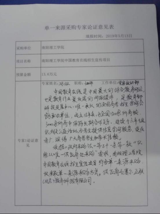 南阳理工学院中国教育在线招生宣传项目拟采用单一来源方式采购。现公示如下: