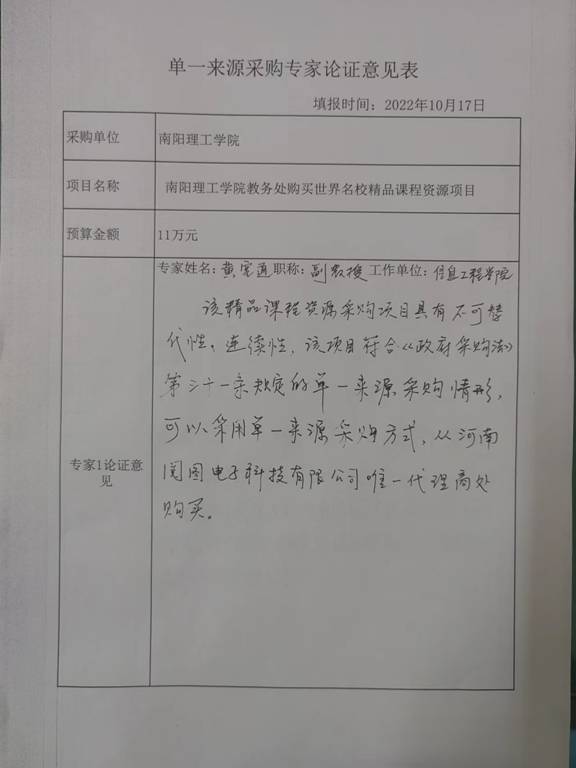 南阳理工学院教务处购买世界名校精品课程资源项目拟采用单一来源采购意见公示