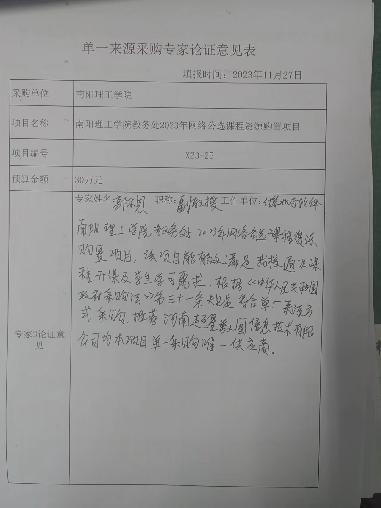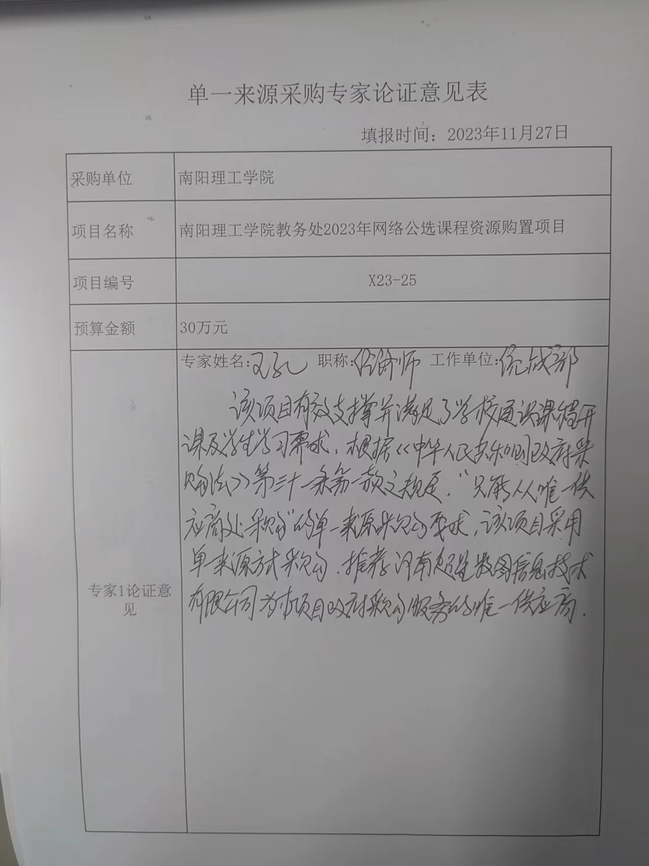 南阳理工学院教务处2023年网络公选课程资源购置项目拟采用单一来源采购的公示