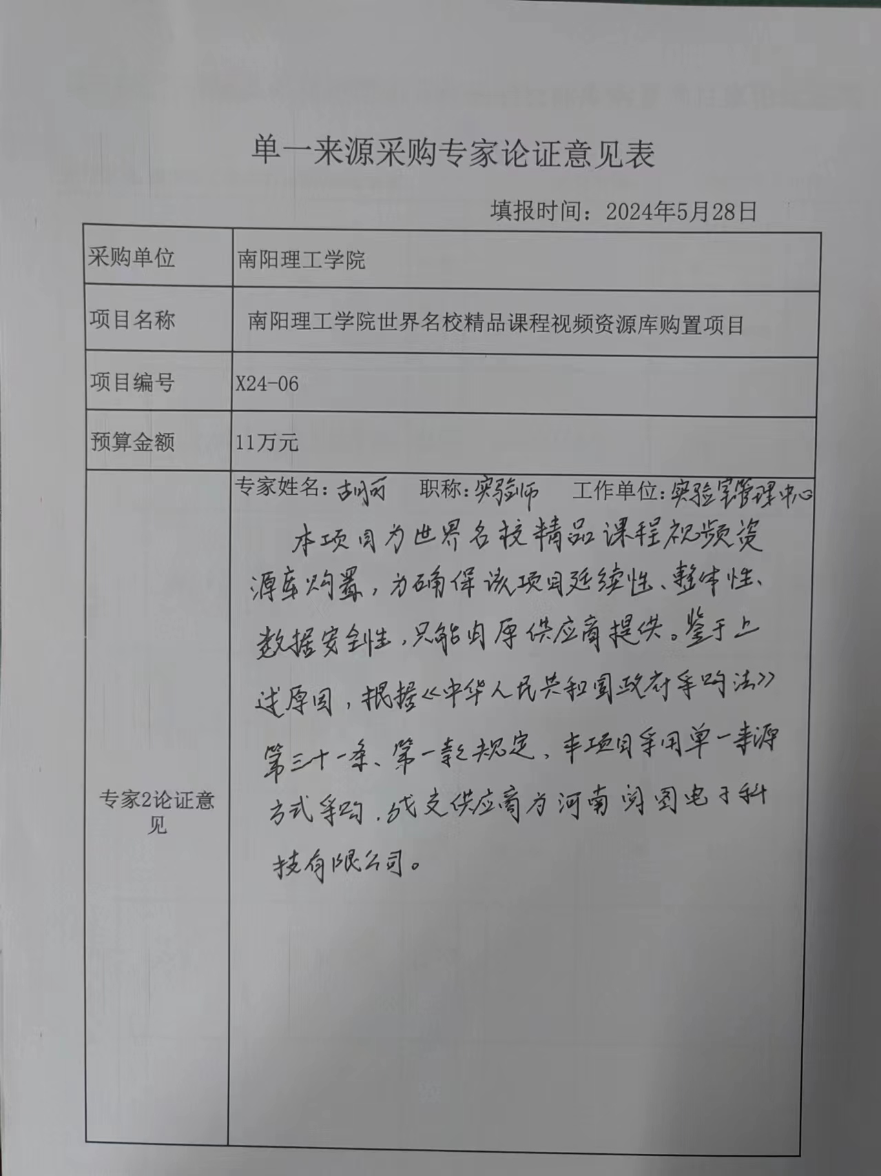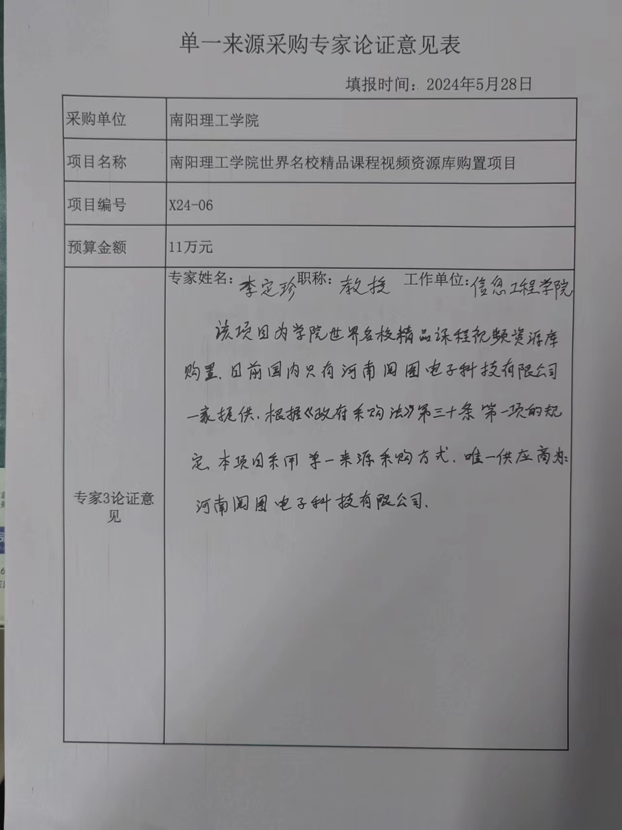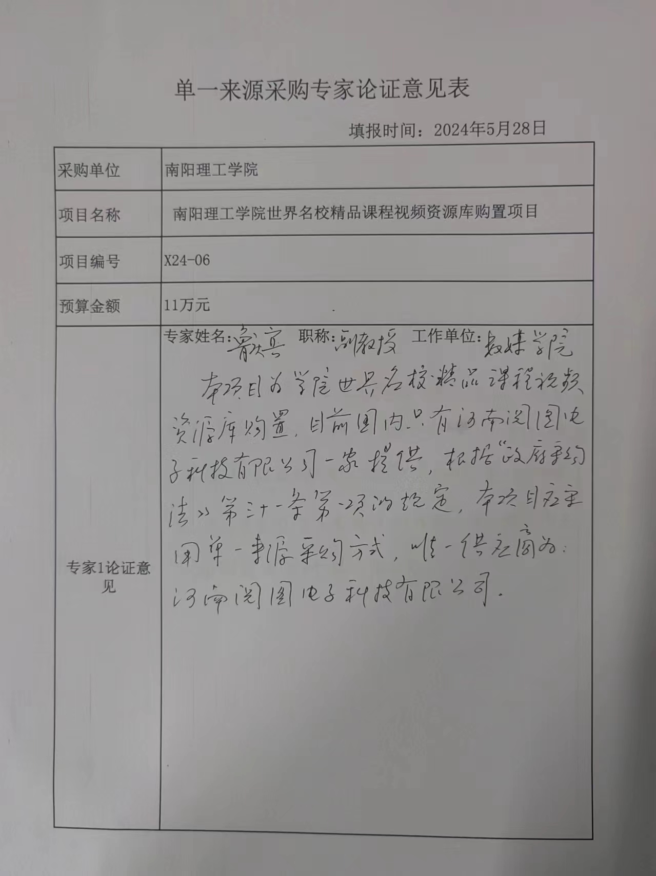 南阳理工学院世界名校精品课程视频资源库购置项目拟采用单一来源采购的论证公示