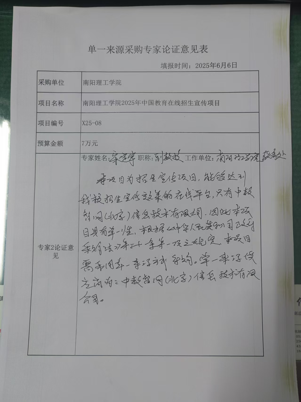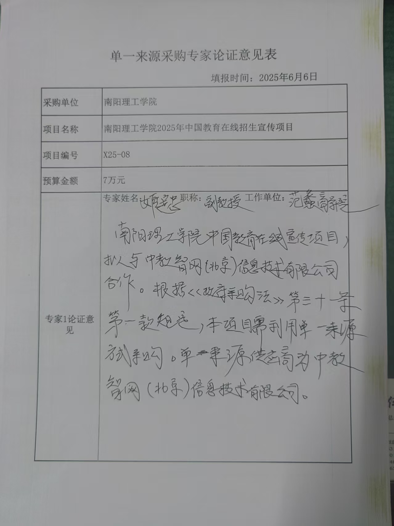 南阳理工学院2025年中国教育在线招生宣传项目拟采用单一来源采购的论证公示