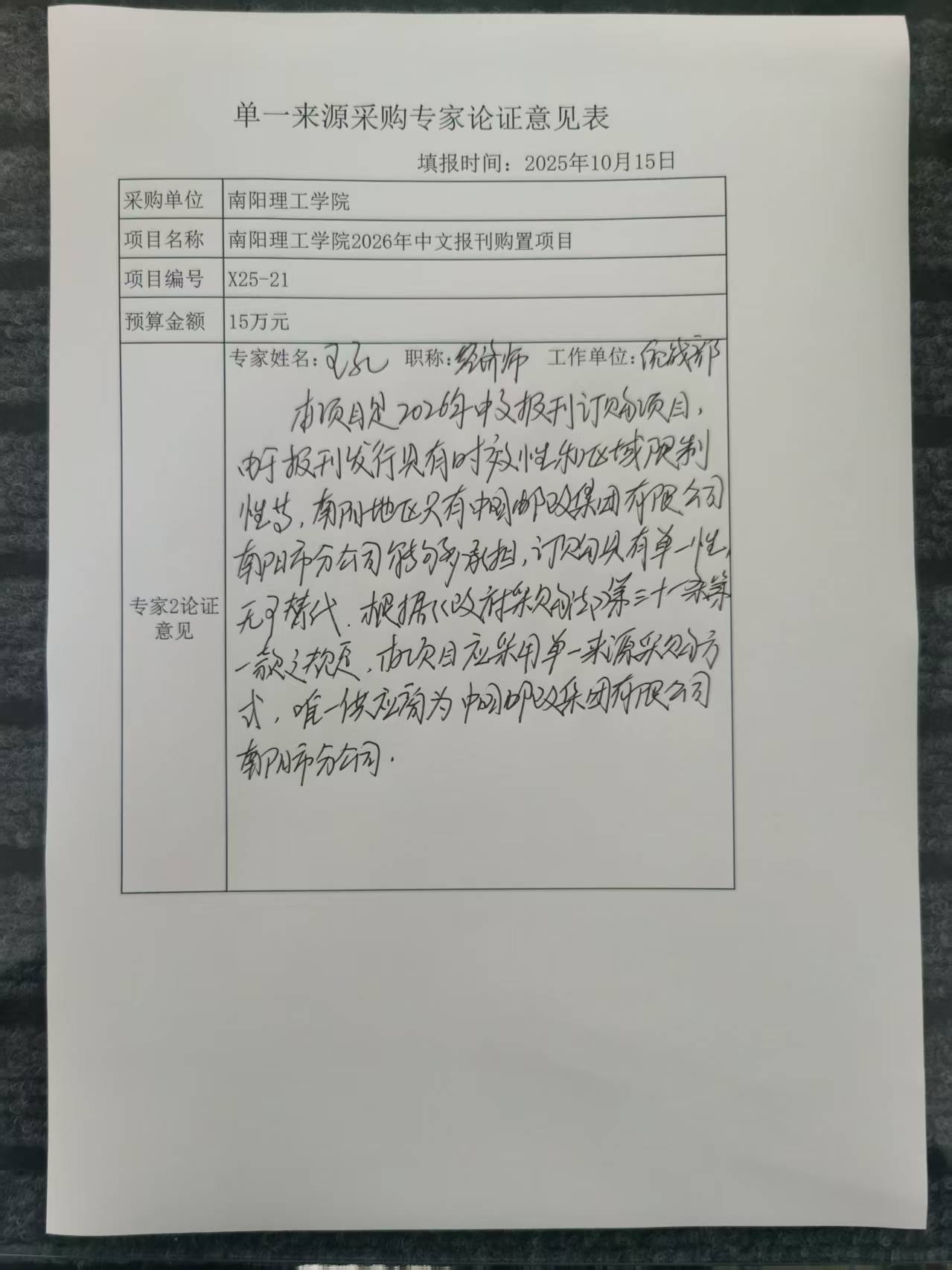 南阳理工学院2026年中文报刊购置项目拟采用单一来源采购的论证公示